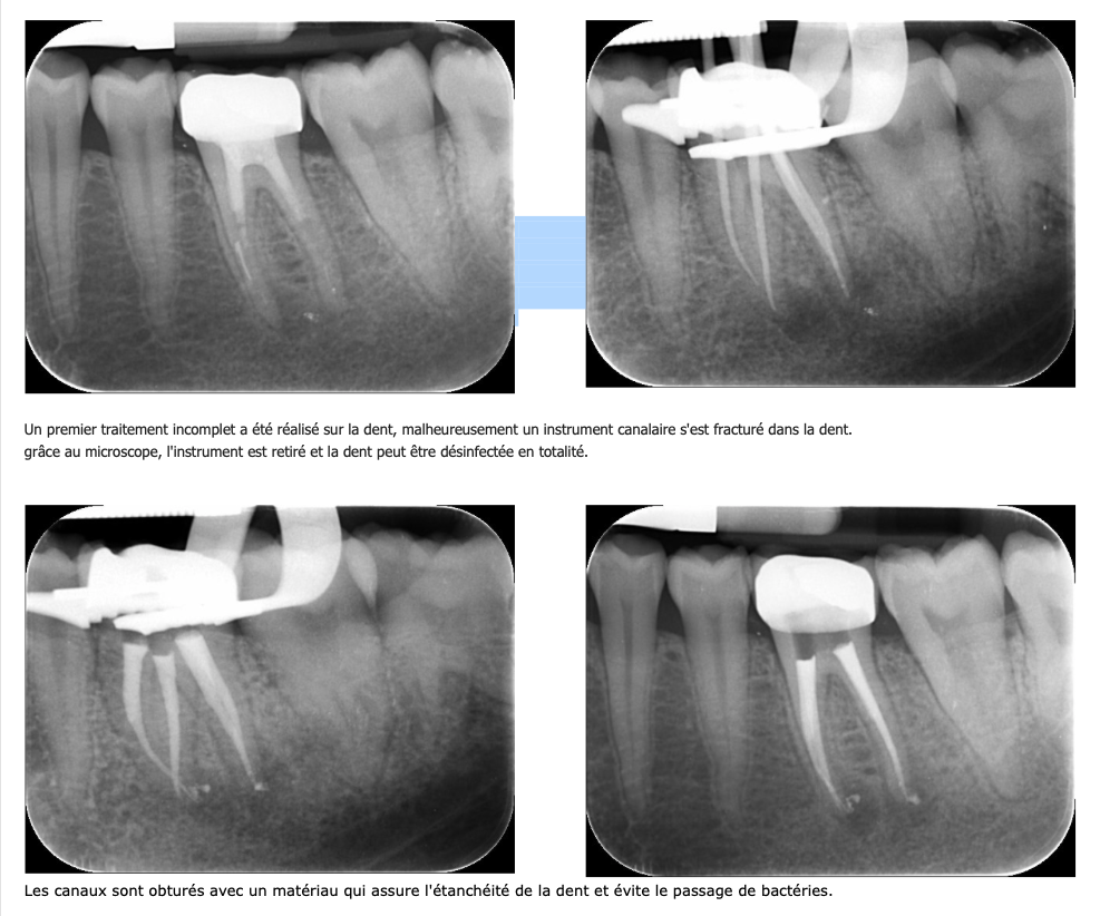Cette discipline a fait d'incroyables progrès durant les 20 dernières années (microscope, Radio 3 D.....) ce qui permet aujourd'hui de traiter et de sauver des dents qui autrefois devaient être extraites.